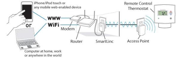 iPhone or any web-enabled device communicates to the SmartLinc which sends signals
